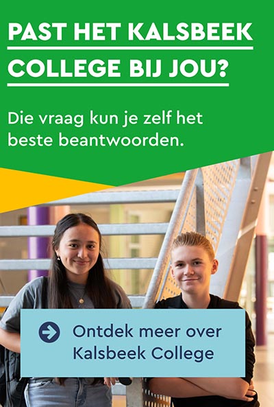 Op het Kalsbeek College groei je op een manier die bij jou past! We dagen je uit, leren je vooruit te kijken en gerichte keuzes te maken. We zijn begaan met al onze leerlingen en bieden je alle ruimte om je te ontwikkelen.